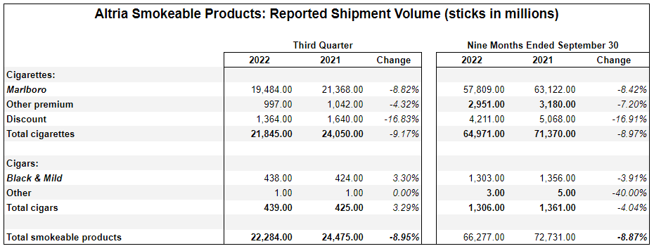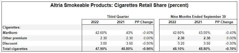 Altria’s PM USA cigarette market share was weaker than the previous year: