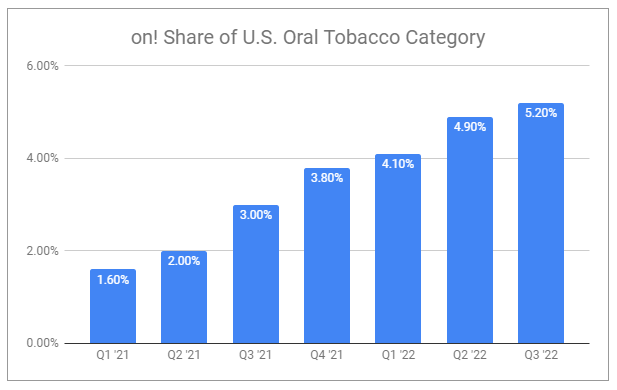 Legacy products continue to lose share, partly driven by the success of on! and other nicotine products winning over consumers: