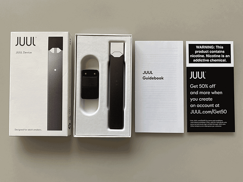 JUUL’s packaging is slim and minimalistic. Everything is methodically well-fit yet fairly unremarkable.