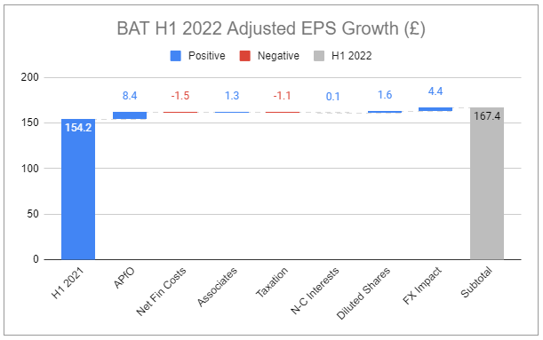BAT’s H1 2022 financial performance was mixed. Reported diluted EPS was down significantly, -42.9%, due to charges related to Russia, DOJ and OFAC investigations, and Egypt. However, group revenue was up 3.7%, and adjusted diluted EPS was up 5.7% at constant currency.