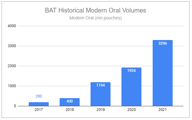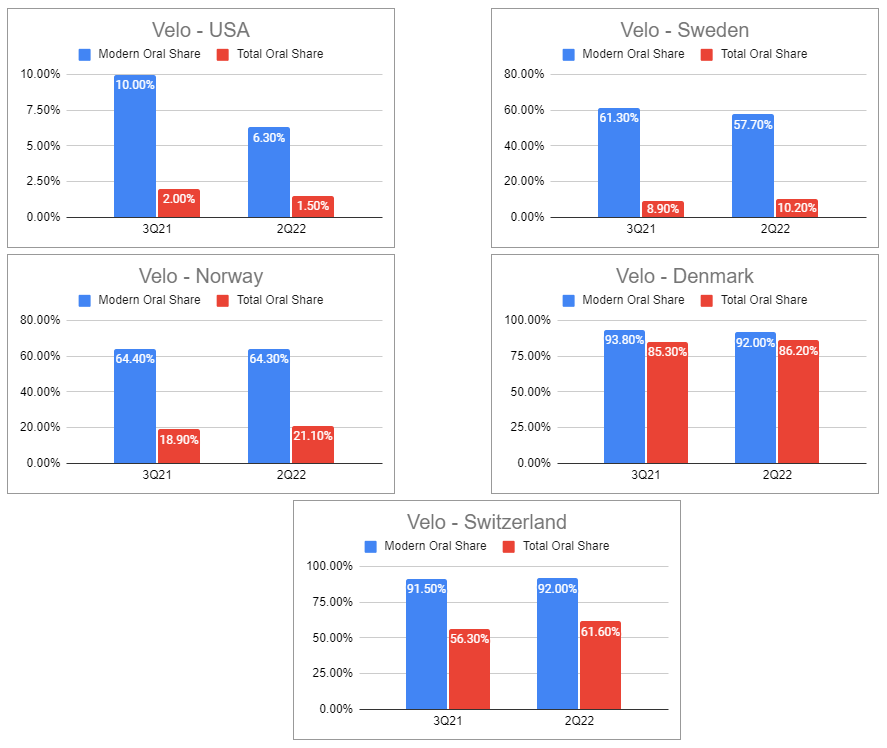 Furthermore, Velo pilot programs throughout the rest of the world have been going exceedingly well. In South Africa, the brand is achieving a >30% conversion rate to active users. Additional geographic expansion is planned throughout the rest of 2022 which I expect to show similar success. Moving forward, Modern Oral will likely be the single most affordable RRP product available in many markets. This is critical in many parts of SEA and Africa, where costs associated with other products, especially HTP devices, may be prohibitive.