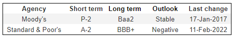 The company’s corporate headquarters are in London, England. Shares trade on the LSE under the ticker BATS and on the NYSE under the ticker BTI. Shares are also available on the JSE and the KN. Presently, the company holds the following credit ratings and outlooks: