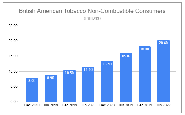Since 2018, BAT’s consumer base of non-combustibles has experienced a 30% CAGR.
