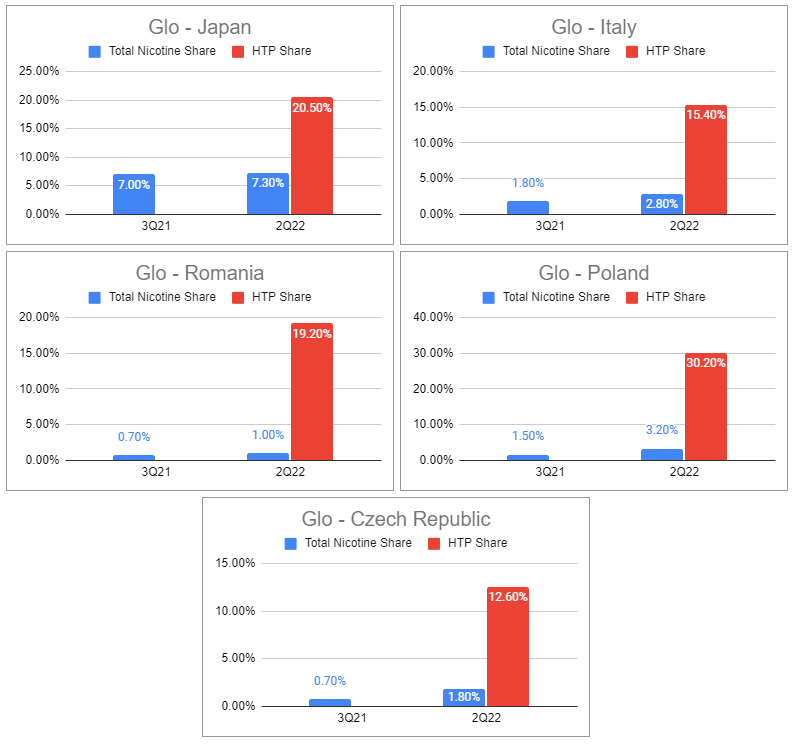 Glo, BAT’s heated tobacco product, is the #2 brand in the world. While far behind Philip Morris International’s IQOS in terms of total share, Glo is quickly gaining traction, with H1 2022 revenue up 44% at constant currency, volume up 30%, and category share reaching 19.6%. While critics will quickly highlight that Glo’s volume share of the total nicotine market is a mere 3.3%, I think it’s important to understand that means Glo’s future runway may be extremely long.