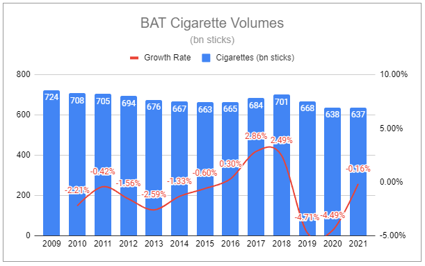 BAT U.S. cigarette volumes have recently declined at an elevated rate relative to historical norms.