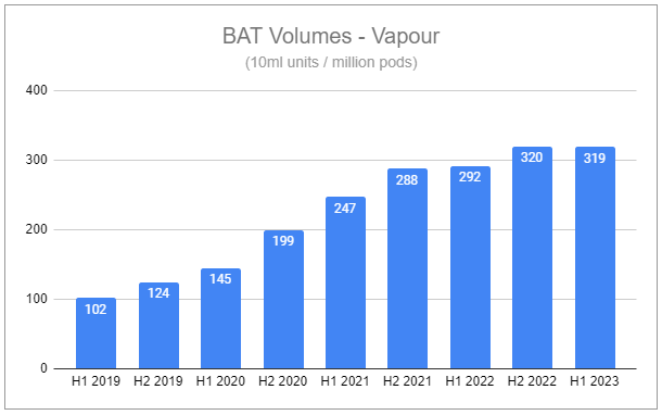 While total Vapour volumes grew 9.25% y/y, volumes in the United States actually decreased by 6.5%.