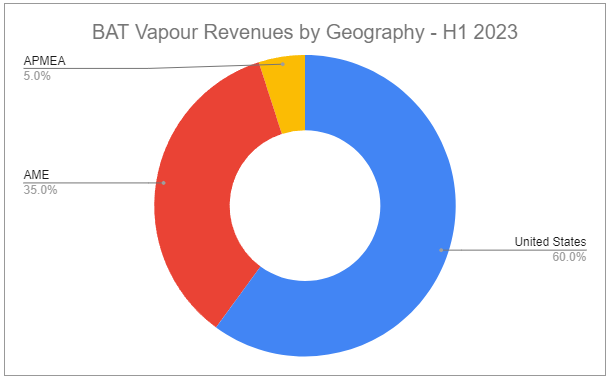 BAT’s continued success in U.S. vapour will acutely rest on a mix of expected future actions by the FDA. The United States currently represents nearly 50% of the company’s Vapour volumes, 60% of Vapour revenues, and category revenues remain larger than BAT’s other two New Categories combined.
