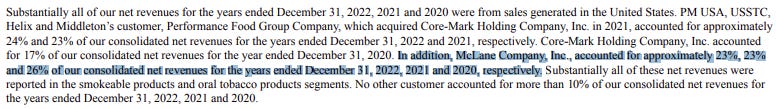 As one of the largest suppliers of consumer products for convenience stores in the U.S., McLane is also one of the largest wholesalers of tobacco products. In fact, it is cited in Altria’s filings as one of its single largest sources of net revenues: