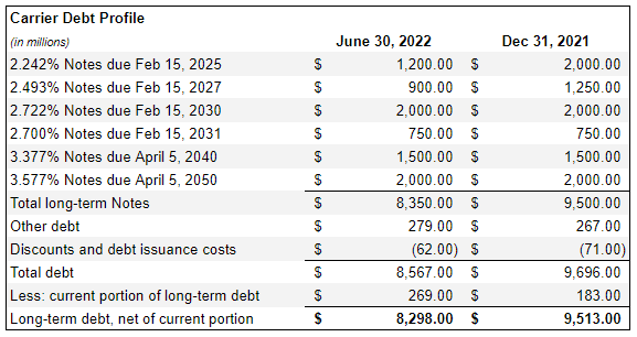 At the start of 2022, Carrier announced the sales of Chubb, a component of its Fire & Security segment, for ~$3.1 billion.