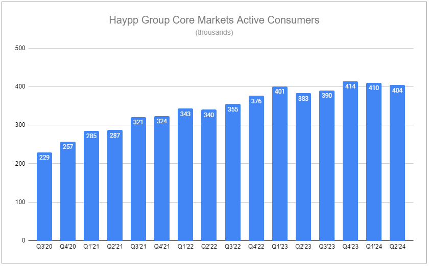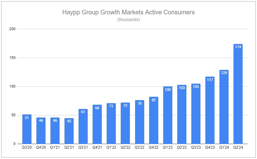 While reinvestment into Growth Markets has masked the profitability of Haypp’s underlying Core Markets for years, the newly segmented Emerging Markets are bound to have a similar yet less pronounced effect. EBITDA margin has improved sequentially, though remains deeply negative, reflecting continued investment. Sequential 58% growth in net sales shows a rapid trajectory underpinned by Active Consumers reaching 14,000 in the quarter. These numbers are relatively small compared to the Core Markets, but it is worth highlighting that the Active Consumers figure is roughly 25% of what Growth Markets had just under three years ago. Although regulatory headwinds are likely to shake up the exact trajectory of the segment, the products sold within ultimately have even higher margins, providing a potential timeline to reach profitability at an accelerated pace.