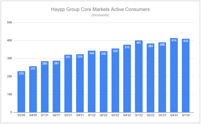 These points make up a virtuous cycle that will allow Haypp to reinforce itself as it outscales the fast-growing market. As Haypp’s CEO Gavin O’Dowd stated during the Q1’24 call, quoted at the opening of this piece, the company quite likes the pricing gaps where they are. Without question, adult consumers do, too, as evidenced by active consumers, number of orders, and average order value are all steadily increasing for the company.