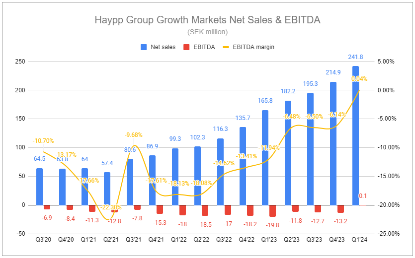 Most impressive was Haypp’s change in Growth Markets EBITDA margin, expanding by 1190 bps year over year and 610 bps sequentially. Explaining this significant step-up was what was highlighted prior: