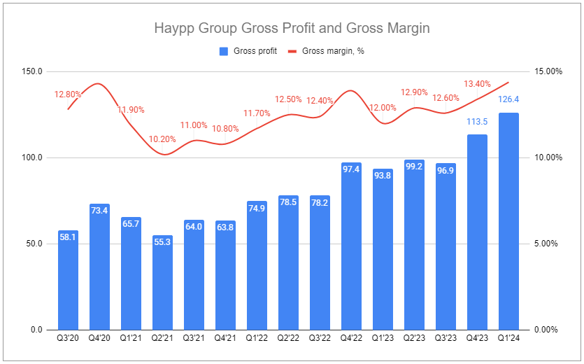 “Our model is that we will generate a bottom line without closing the pricing gaps on any competition. And we quite like the pricing gaps where they are. We believe there are good reason for people to maintain or accelerate the migration from offline to online. So we’re not particularly interested in closing the price gaps bearing in mind how competitive or how rapidly growing the category already is. We’re very keen to continue to take share within it. So we see that we can maintain the price gaps and that what you're getting coming through in the form of increased margin is predominantly falling out from both the economies of scale, both directly within our operations and, of course, with support from our business partners.” – Gavin O’Dowd, Haypp Group CEO, Q1’24 Call