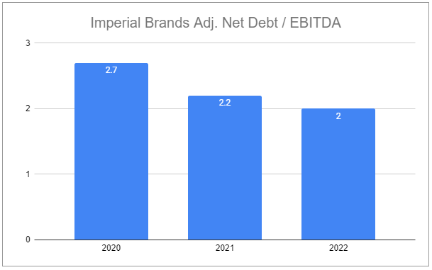 Imperial Brands has begun to buy and retire its own shares hand over fist. The share repurchase program for 2023 measured £1.0bn. Next year it is aimed to increase to £1.1bn, as per its most recent pre-close trading update. These programs are gigantic relative to the size of the company.