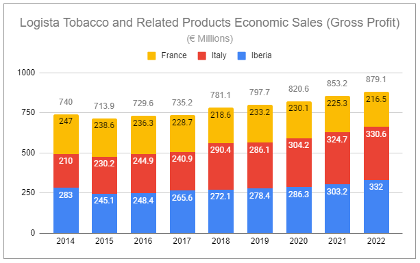 The second benefit is that the distribution stake acts as a defacto hedge against Imperial’s strategy of reigning back NGP spending and instead focusing on legacy products. Legacy products, such as cigarettes, along with facing a secular volume decline, have continued tax increases naturally acting as a headwind and negatively affecting inventory value. These are offset, partly or more than entirely, by price increases set by primary tobacco manufacturers carried through the value chain. Critically, despite traditional tobacco volumes continuing to decline, total tobacco volumes have remained stable for products distributed by Logista thanks to strong growth in next-gen products, with the group more recently citing volume growth specifically in IQOS HTUs. With price/mix continuing to remain favorable, Logista has been able to grow associated gross profits steadily in its core business despite numerous acquisitions made in an attempt to diversify away from it.