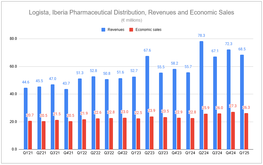 Despite incrementally higher cyclicality, Logista’s pharmaceutical distribution shows excellent strength, segmented separately from the core transportation activities. Q1’25 revenues were up 23.1% from the previous year, with economic sales up 15.1%. While the timing is unknown, this remains where future bolt-ons are most likely, expanding the footprint and suite of services. While also having a lower margin than the core business, rigid regulations produce an environment that’s harder to encroach upon, boosting retention and giving the group ample room to grow as is.