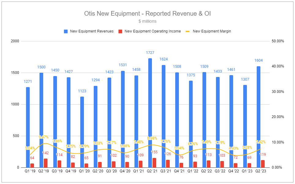 The market for New Equipment in China has been rather lackluster, and while many have expected a recovery, it has yet to materialize. How detrimental is this to Otis’s results? It’s worth walking through some comparative numbers between H1 2023 and several years prior.