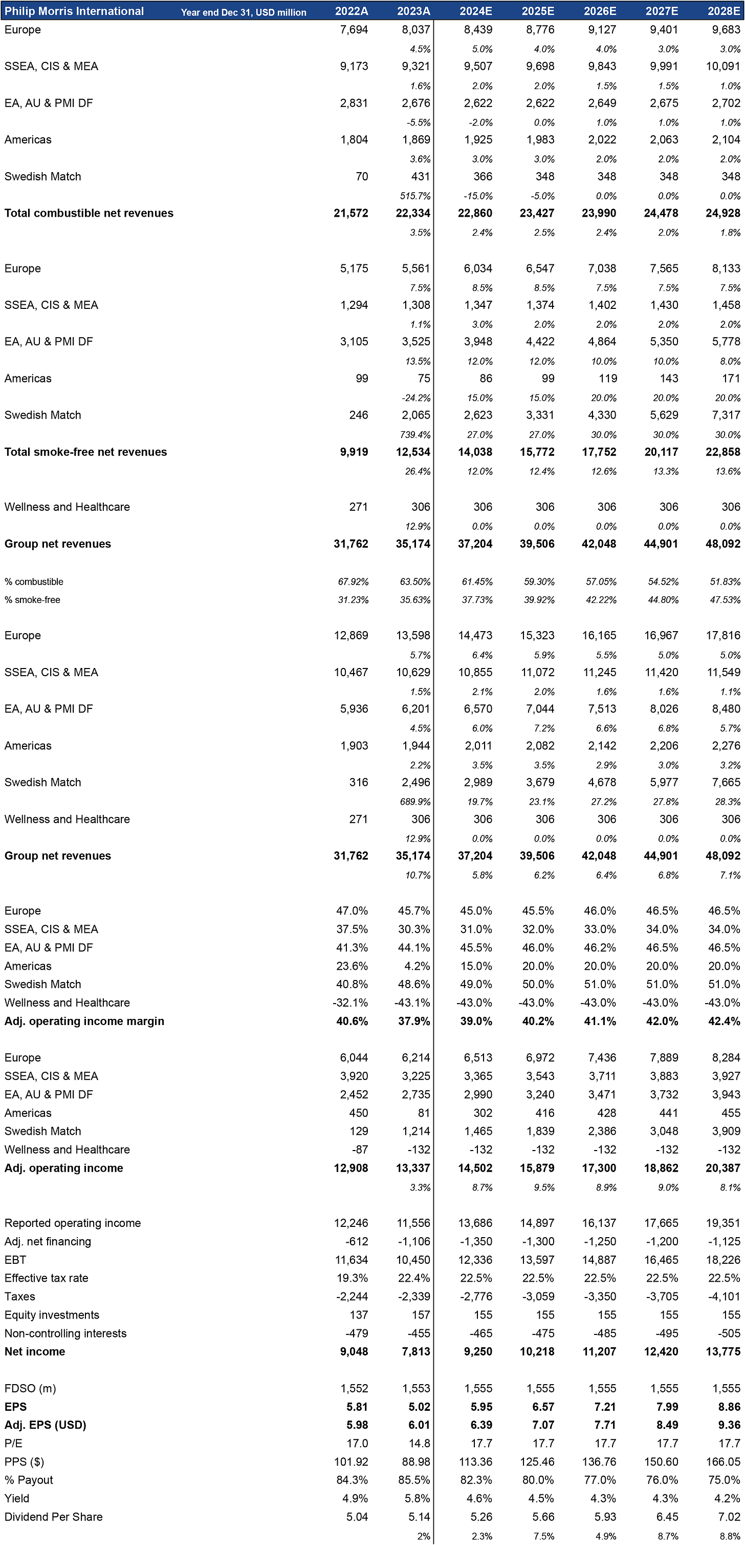 I previously highlighted that the US modern oral market is likely to be tested over the next few years by potential new entrants, new product iterations, and how the FDA ultimately proceeds to evaluate modern pouches categorically. Each day, we move closer toward rulings on all of the v1 PMTAs pending, and with the recent overturning of Chevron deference, the future regulatory landscape could shift dramatically—though, in my view, the FDA still holds a large toolbox to roadblock new products if it so chooses. As for the competitive aspect, due to the current pressures weighing on PMI, the next 18 months will act as a useful preview, providing a unique opportunity to witness to what extent ZYN is capable of reversing volume share loss and managing value share or if other products are able to continue building momentum against it. PMI could also face additional challenges, both competitively and legally speaking, hinted toward during the Q2’24 call: