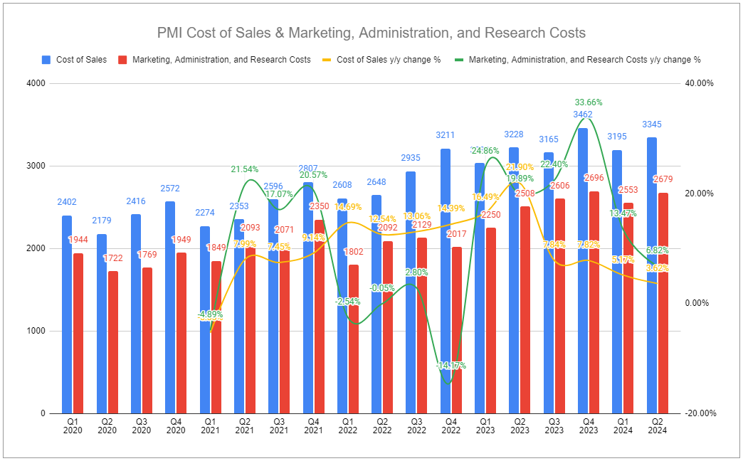While combustible products continue to produce exceptional profits and IQOS maintains its growth towards gargantuan status, PMI’s modern oral nicotine pouch, ZYN, remains the talk of the town. The product is considerably smaller in total contribution but is remarkably high on a per-unit basis and is far faster growing. In Q2’24, ZYN volumes outside of the US grew more than 50%, and within the US, ZYN volumes grew by 50.3%. This is in stark contrast to Snus, Moist Snuff, and Other Oral, in which volumes changed by -6.2%, +0.2%, and -17%, respectively. Nonetheless, the result was that total oral product volumes grew by more than 20%.