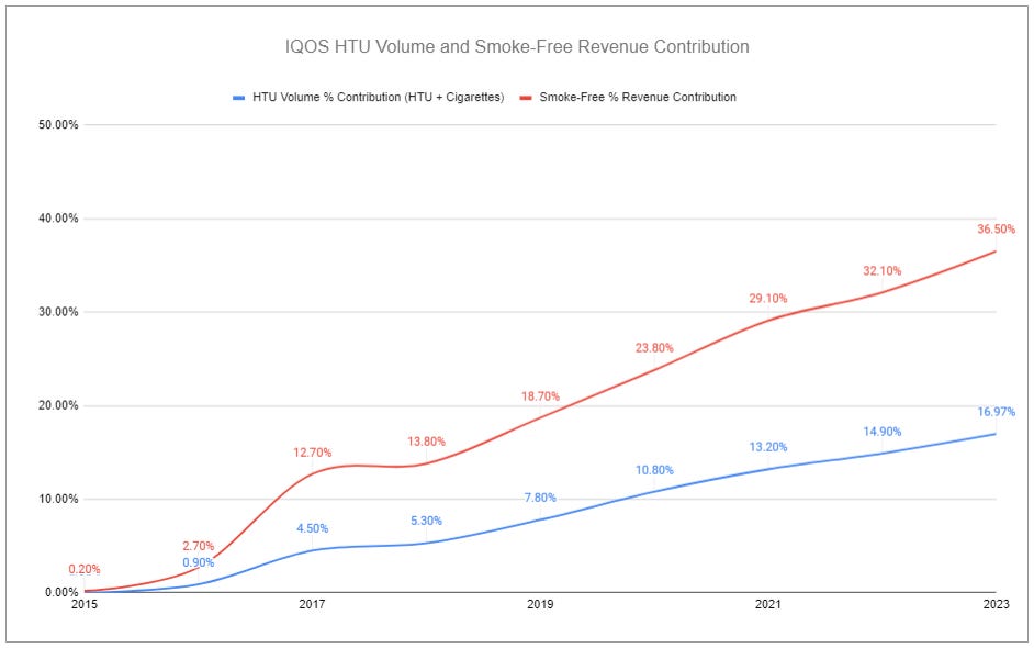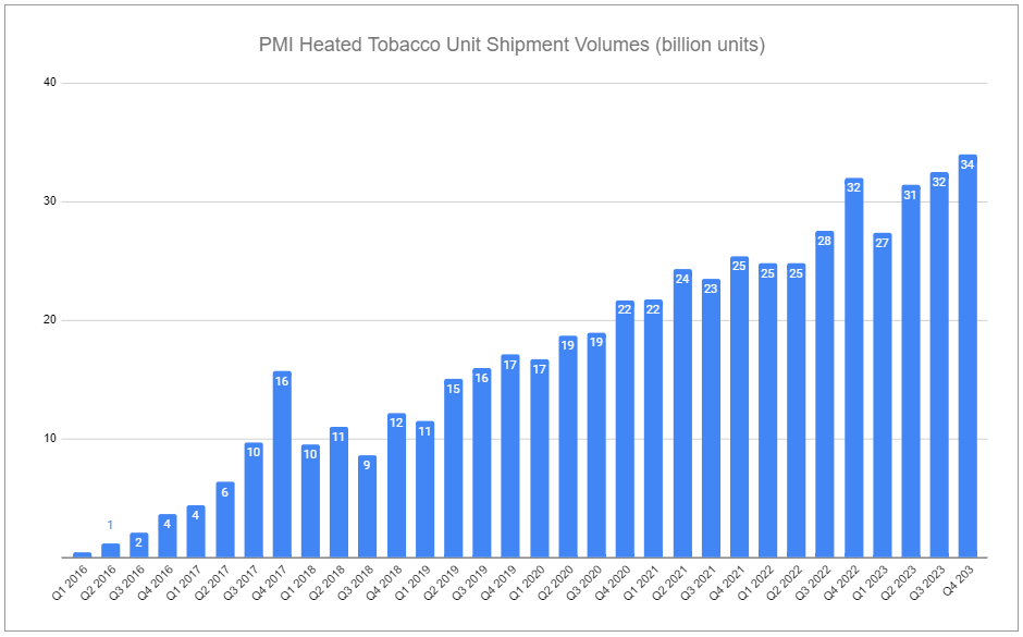 IQOS heated tobacco units sport net revenue ~2.5x that of combustibles on a per-unit basis and carry a higher contribution margin.