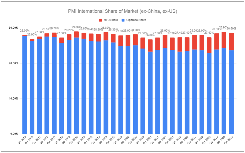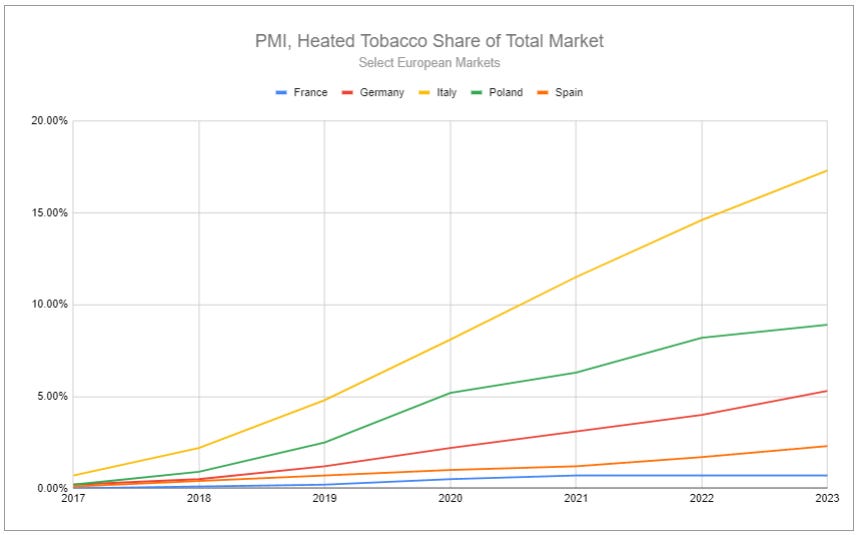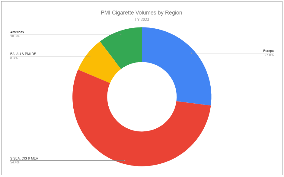Moving forward, reported figures related to Swedish Match should become cleaner. Lapping the acquisition date, pro forma numbers are less fuzzy, and PMI has expressed that beginning in Q1 2024, related figures will be consolidated into its existing reporting regions.