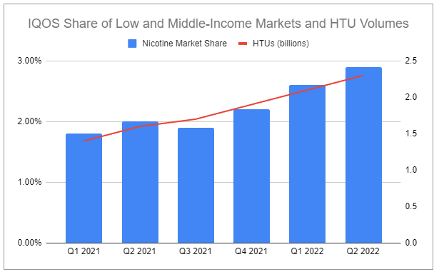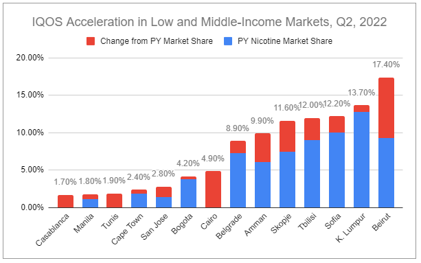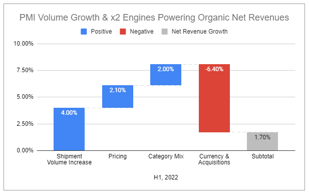 The complexities of IQOS development and product design are matched by the complexities relating to its profitability. The devices themselves are not cheap and require special inputs, including semiconductors—something that does not concern cigarettes. This has led the company to effectively subsidize device adoption, which compresses operating margins. This is especially true in the last few quarters, where the company has experienced elevated increases in the COGS and supply chain constraints, as well as both an acceleration of adoption as well as previous IQOS users upgrading their devices. This had led to the Total PMI OI Margin declining 90bps in H1, 2022 (down 110bps on a pro forma basis).