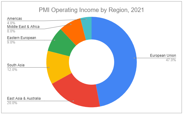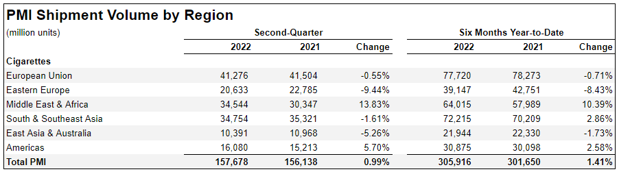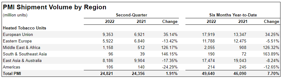 The following subsections contain some data that includes Russian operations. PMI intends to include operations in Russia and Ukraine in its reporting for the remainder of 2022. Starting March 24th, 2022, PMI began to suspend certain investments and scale down manufacturing in Russia. The company plans to work on exiting the Russian market in an orderly manner as the complexities associated with operating there continue to grow. In 2021, Russia accounted for almost 10% of total shipment volumes and approximately 6% of net revenues for PMI. As of June 30, 2022, PMI’s assets located in Russia have an approximate value of $2.5 billion.