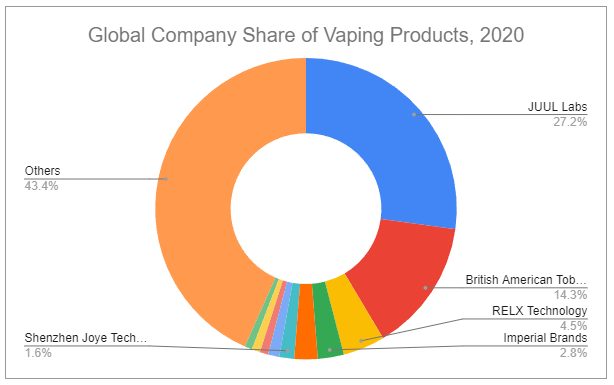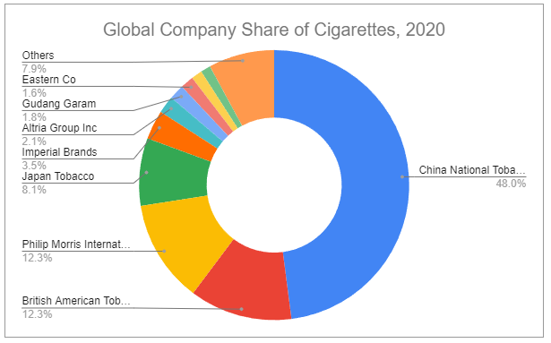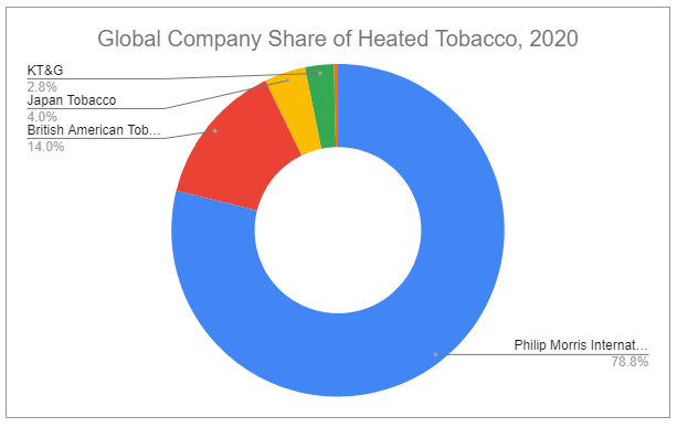 The absurdly high profitability of the industry would normally invite continuous competition, but staggeringly high brand loyalty reinforced by government regulators, who across the world have made it hard for new entrants to succeed, has largely protected incumbents. While there are local producers for various products in certain countries, these dynamics have led to the overall market becoming extremely concentrated (and ex-China, PMI is the largest player.)