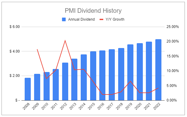 I have modeled an incrementally increasing dividend with the payout ratio shifting to well-under management’s stated target of ~75%. Additionally, PMI suspended its share repurchase program upon the announcement of its offer for SWMA. I assume that the program is reinitiated in 2023.