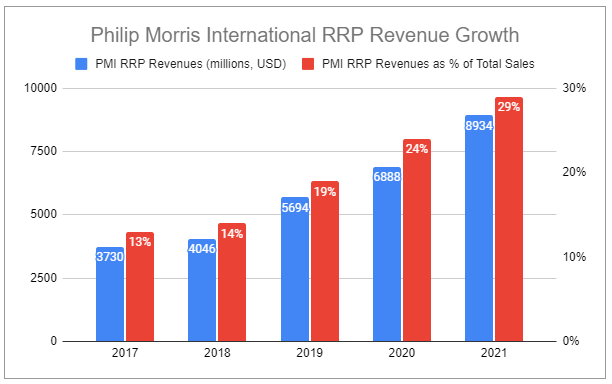 The company has an ambitious goal of generating more than 50% of its total revenues from smoke-free products by 2025. To further accelerate a smoke-free future, the company has also acquired multiple pioneering pharmaceutical companies. And additionally, earlier this year, PMI announced a $16 billion cash tender offer to acquire Swedish Match, the Scandinavian company with an impressive portfolio of leading oral nicotine products.