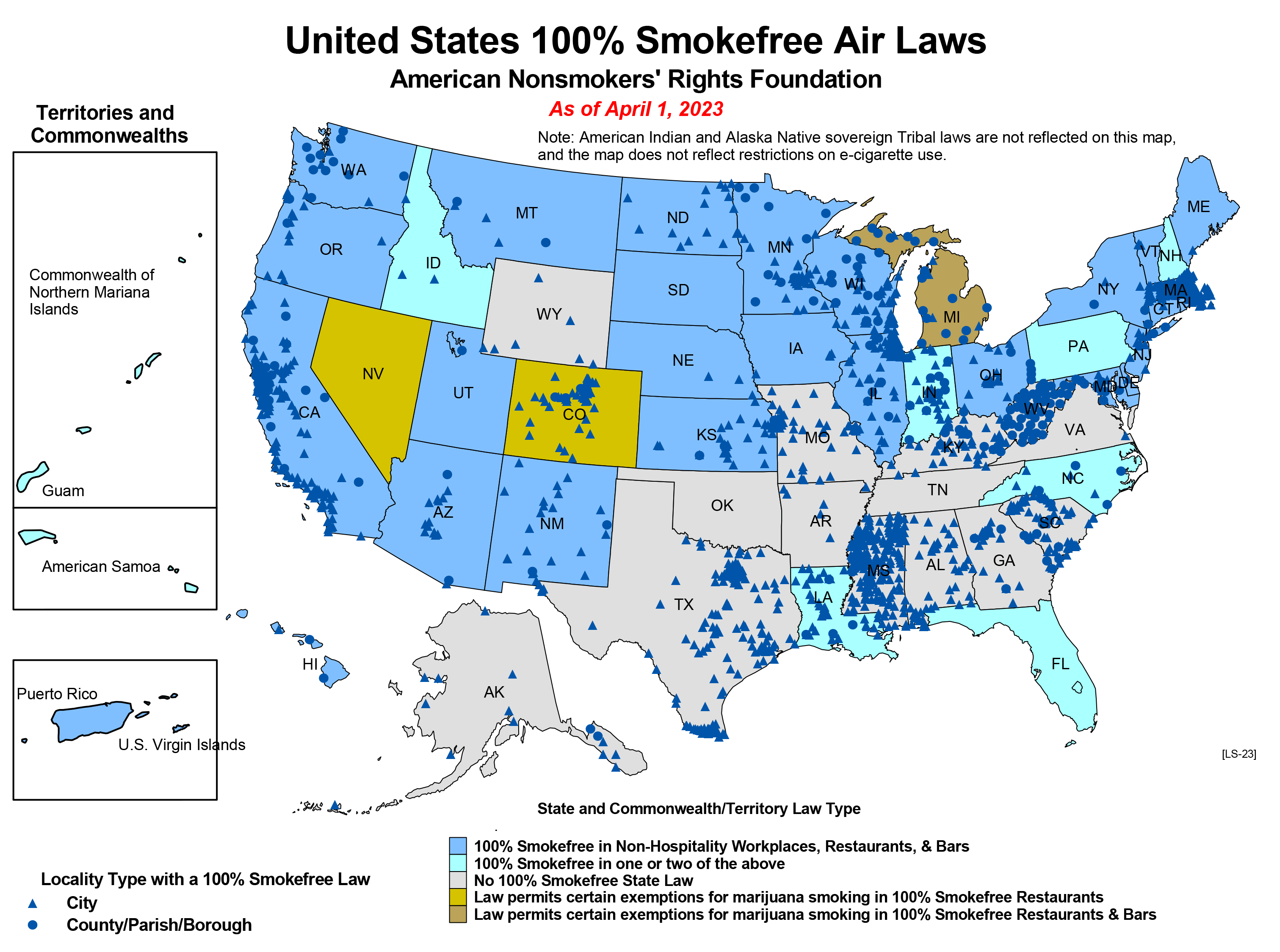 Along with efforts to reduce underage use, continued measures have been taken to reduce adult usage of all tobacco products. This includes laws to restrict indoor usage. However, even amongst states with smoke-free air laws, there are special exclusions for designated cigar bars.