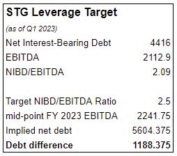 STG has not been shy about using debt to drive growth and returns. However, its leverage is not concerning and is considerably smaller relative to other publicly traded tobacco companies. As of Q1 2023, the company holds: