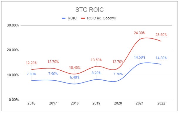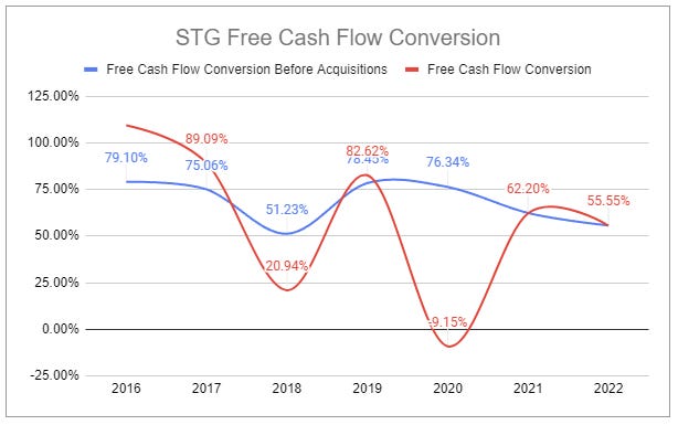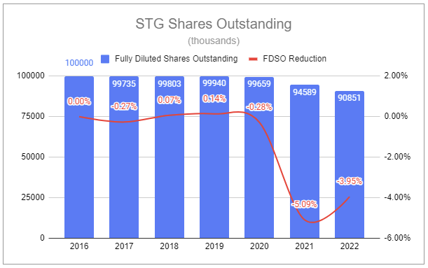 Management has aggressively returned capital to shareholders in the form of dividends and share repurchases. Since STG became public in 2016, total capital returned represents 61.5% of the IPO market capitalization. Even while reinvesting in the business, capital returned to shareholders in 2021 and 2022 equated to 12% and 11% of beginning-of-year market capitalization, respectively. With an under-levered balance sheet and high free cash generation, I believe management is poised to grow the business, increasingly produce value, and return substantial capital to shareholders at a rapid rate.