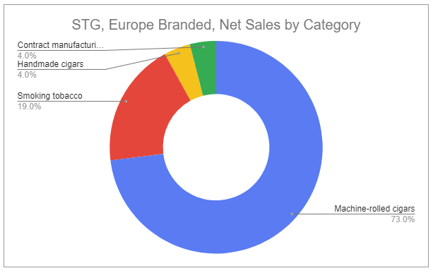 STG’s Europe Branded division sells products to wholesalers, distributors, and directly via retail. Top brands include La Paz, Panter, Mehari’s, and Signature, with Signature Finds being the most popular product. The segment focuses on precision pricing strategies and on country/region-specific trends in consumer demand to drive growth. Machine-rolled cigars in Europe are generally smoked by mature consumers, leading to volumes slowly declining while value continues to grow. STG’s European product portfolio spans value-for-money and premium segments, allowing the company historically to maintain its total market share regardless of cycles. Smoking tobacco volumes have also been strong, with the company exercising price to steadily drive value.