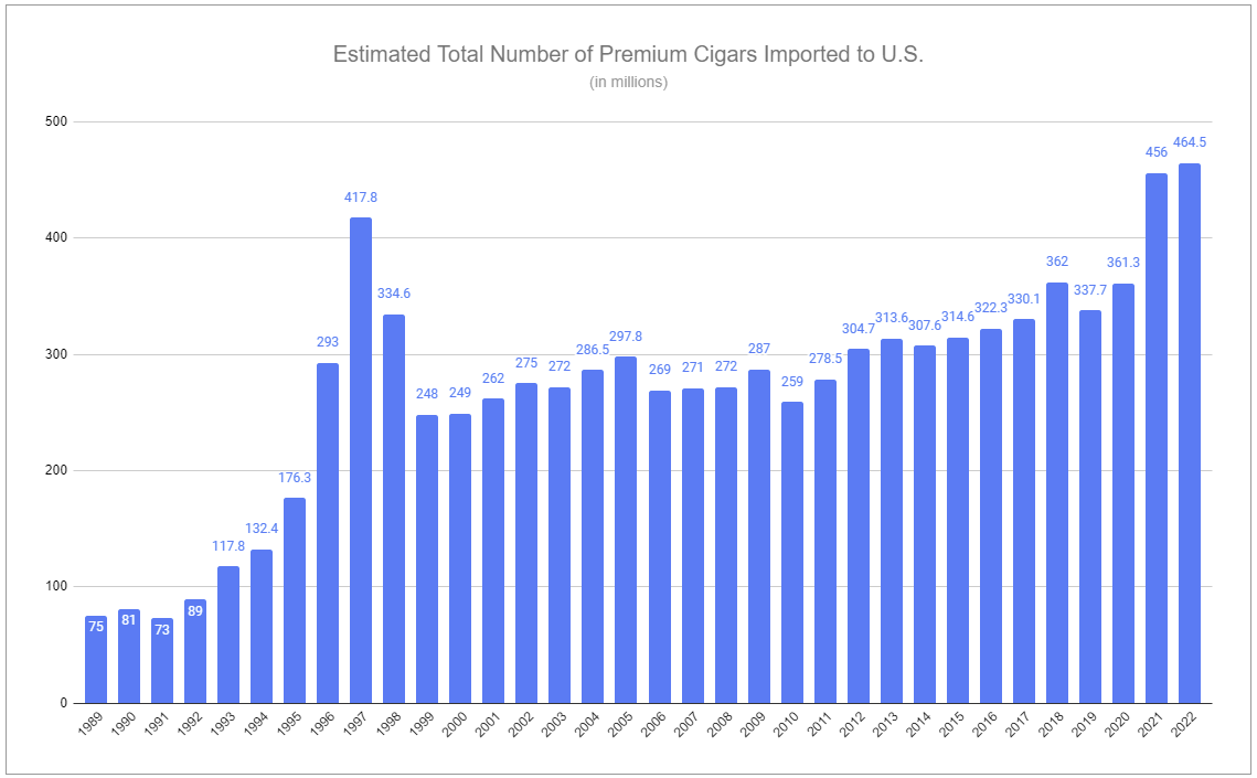 Premium handmade cigars are an exceptional class of product. They are an artisanal luxury with complexities that make them difficult to copy and produce, with leading brands having heritages tracing back centuries. The only people who truly understand the nuances of the industry are producers and devoted consumers. Most investors and analysts - even those focused specifically on tobacco - pay almost no mind to this category, with institutional-grade research reports failing to provide coverage. That lack of attention is a mistake—one that represents opportunity. Hinting towards the possibilities is an image that runs counter to narratives proclaiming that demand for all legacy tobacco products is quickly fading: