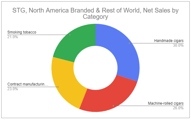 STG’s North America Branded & Rest of World division is split 57% North America and 43% Rest of World (ex-China). The company owns a number of top premium cigar brands, including Macanudo, CAO, Punch, Cohiba, Hoyo de Monterrey, and Partagas, with Macanudo being the largest premium handmade cigar brand in the United States based on sales volumes. If you are unfamiliar with these brands, let me assure you, they are widely acclaimed and can be found in every respectable retail outlet. It should be noted that the Cuban company Habanos SA (in conjunction with Altadis) produces Cuban versions of many of the same brands. These versions can not be imported commercially into the U.S. as the embargo is still in effect. Although Cuban cigars are still renowned, Cuba is no longer the premier origin it once was, with new world cigars having equal quality and often higher consistency.