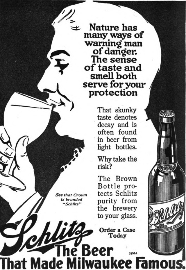 By 1902, Schlitz had outpaced fast-growing competitors to become the largest brewer in the United States. Its growing profits allowed it to improve operations, increase marketing, and innovate continually. In 1912, the company introduced the brown glass bottle, which protected the beverage from sunlight, reducing spoilage and preserving the beer’s flavor. All other major brewers followed, quickly adopting similar bottles to protect their products and avoid being seen as inferior.