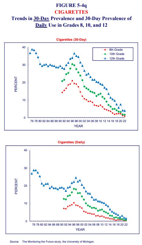 This is further supported by data from the recently published 2023 National Youth Tobacco Survey, showing the number of youths using vaping products daily has continued to decline at a precipitous rate, falling by more than half in the last 4 years. In 2022, during the meeting with the AVM, Brian King also insisted there remains a gateway from vaping leading to cigarette use. While there may be some relationship, such a gateway most certainly is not visibly reflected in the number of high schoolers who use cigarettes—a figure that continues to collapse: