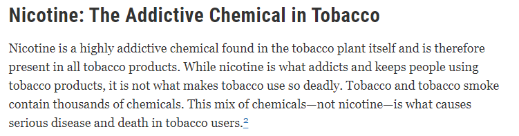 The accepted medical position is that nicotine itself… poses few health risks, except among certain vulnerable groups.