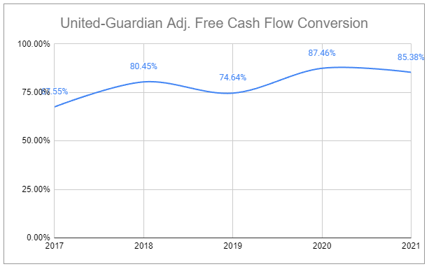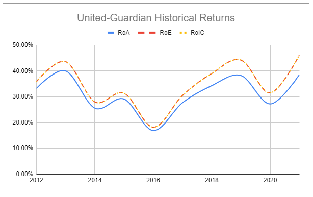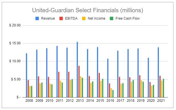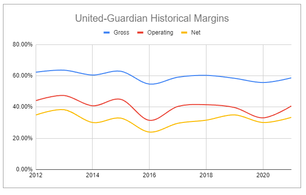 I valued United-Guardian using a variety of methods to account for the fact that there is undoubtedly a huge range in potential futures. Prior to diving into each method, it’s important to consider some of the very impressive metrics United-Guardian boasts: