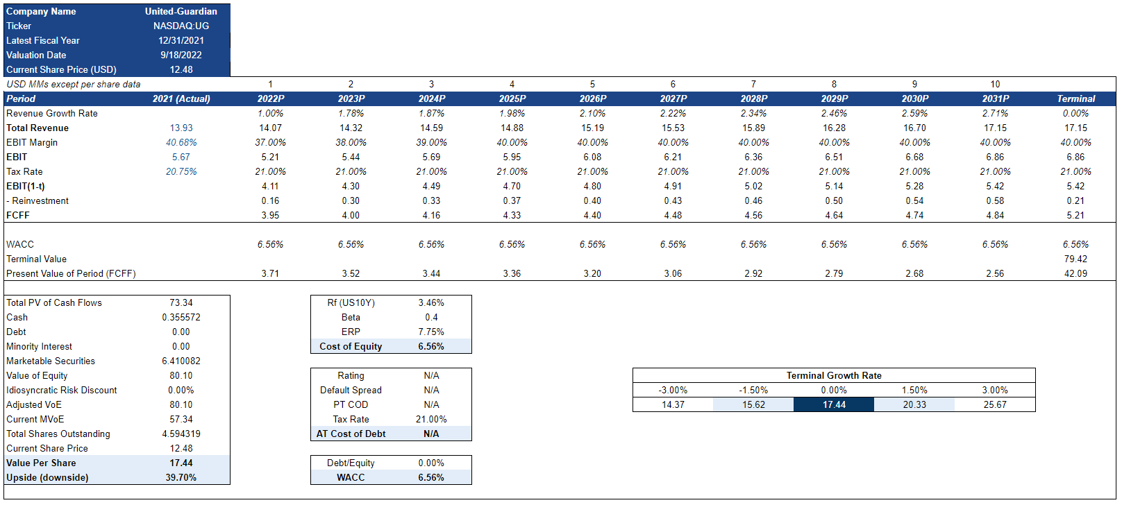 United-Guardian $UG: Analysis, Valuation, and Pricing, 2022