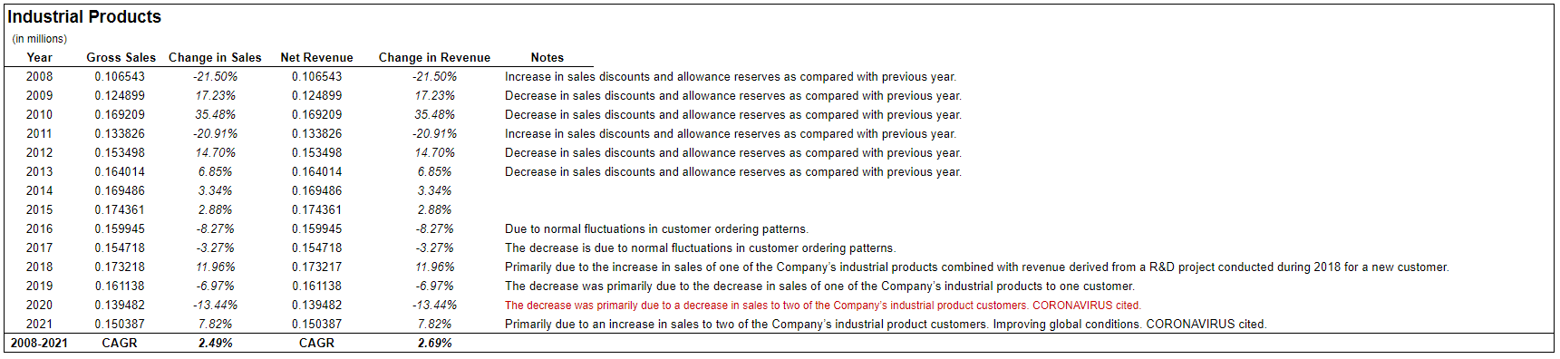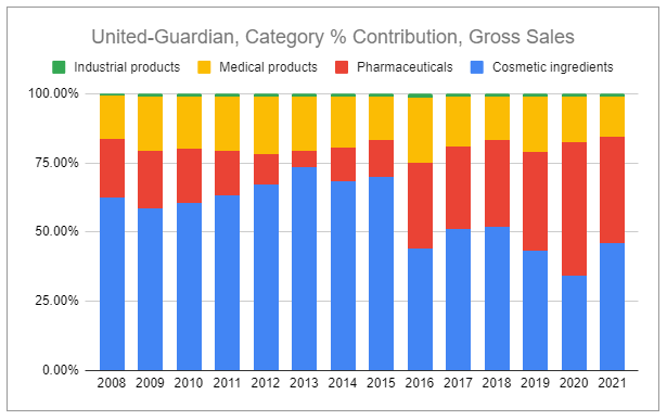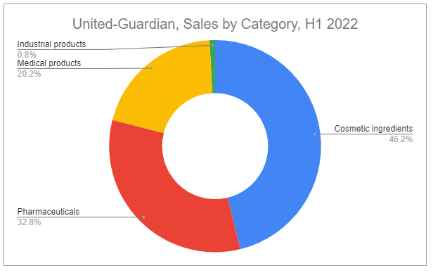 United-Guardian’s proprietary industrial products contribute the least in sales, by far. Despite being the smallest category and sales growth recently showing a degree of stagnation, it again demonstrates the company’s ability to create value in unique niches. Products include: