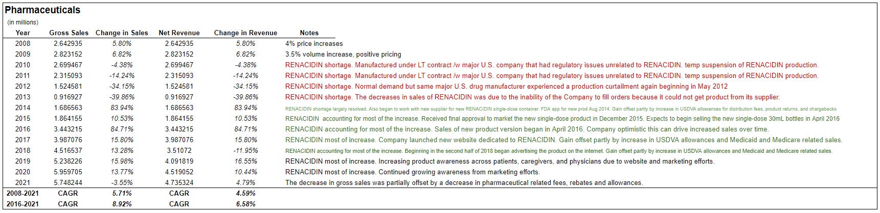 RENACIDIN - ( 34% of 2021 gross sales) the company’s leading pharmaceutical drug.