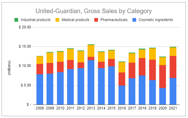 While the growth trajectory for United-Guardian’s cosmetic ingredients is largely contingent on Asian demand, there are clearer tailwinds for the pharmaceutical and medical product segments.
